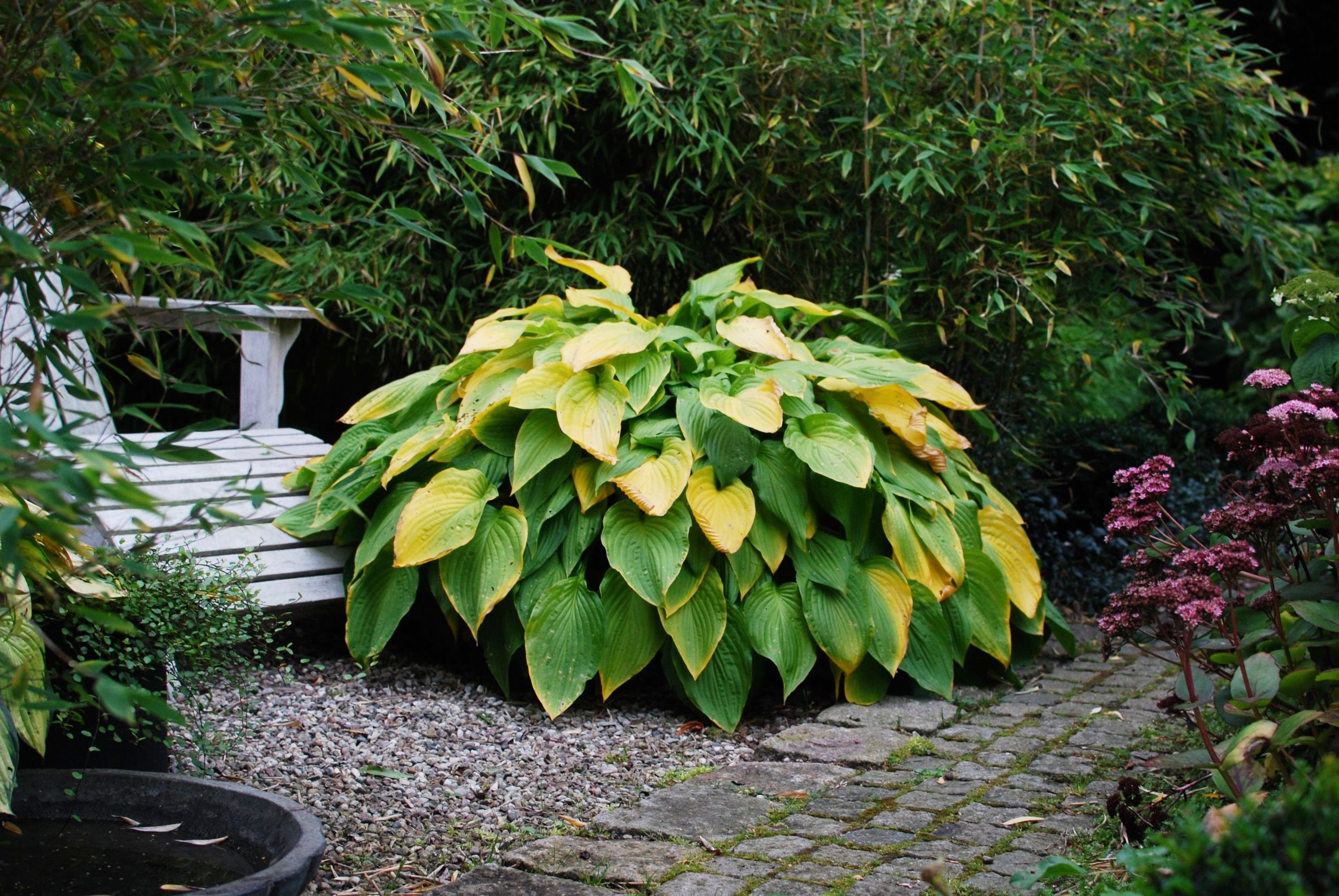 Efter morgonrundan i trädgården kan jag bara konstatera det faktiskt är höst. Hostorna har börjat skifta i gult. Min trädgård som annars är väldigt grön går nu in i en färgsprakande period.