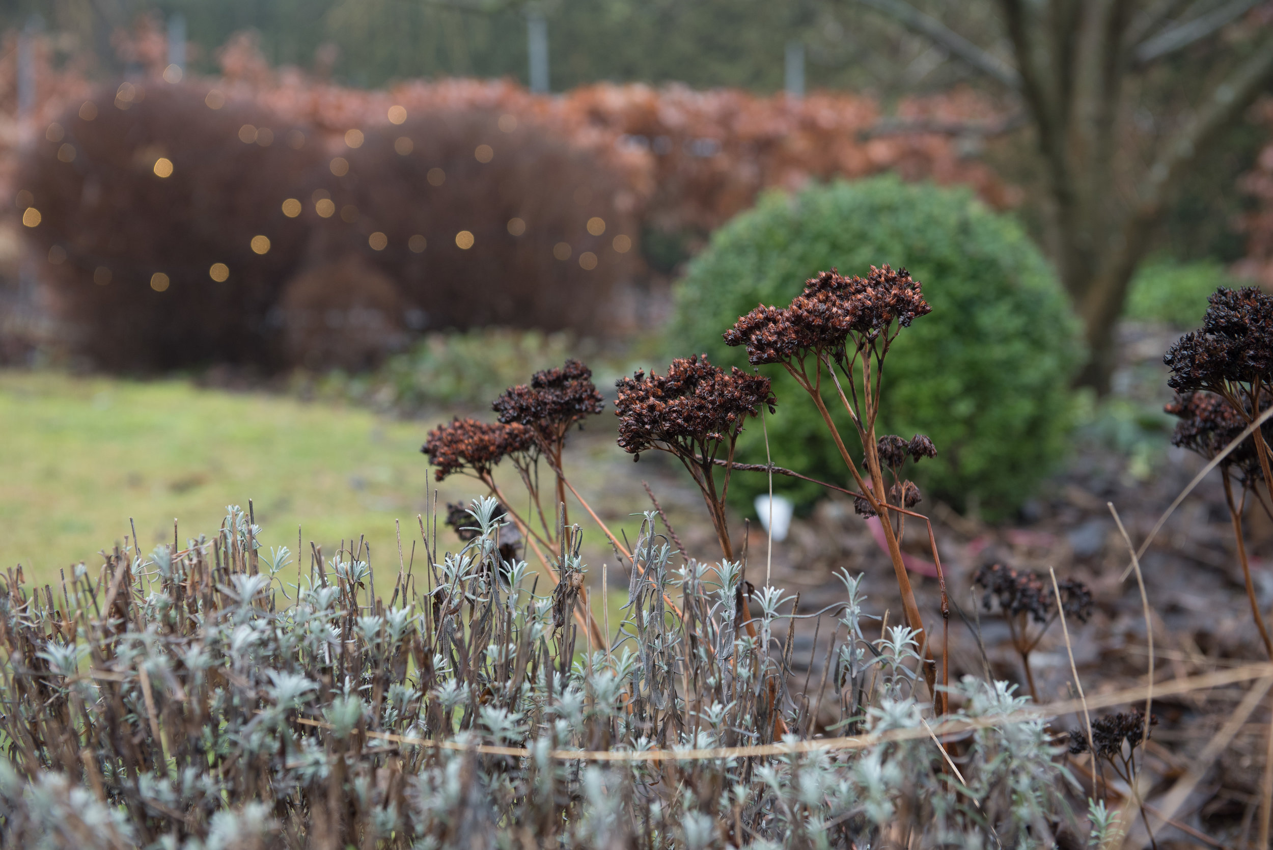 Grå dagar men färgstarkt i trädgården