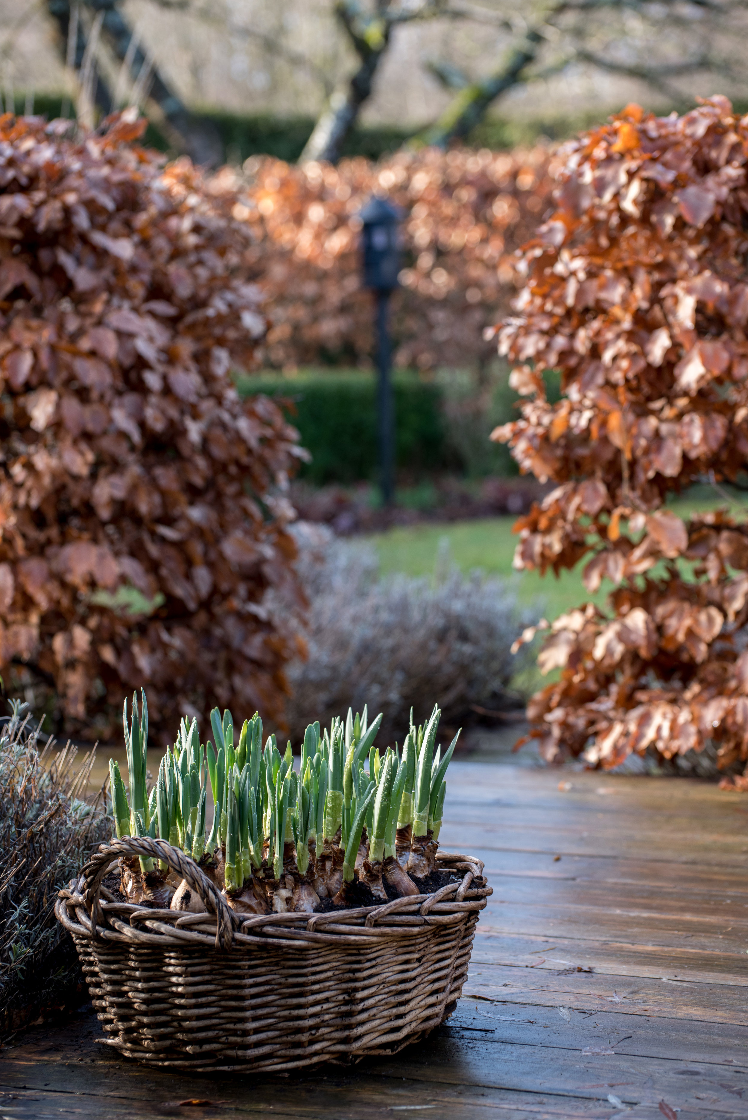 Pingstliljor på gång. Dessa har jag inte drivit upp själv, utan köpt precis som de är nu. Jag hoppas de är vackert blekgula.