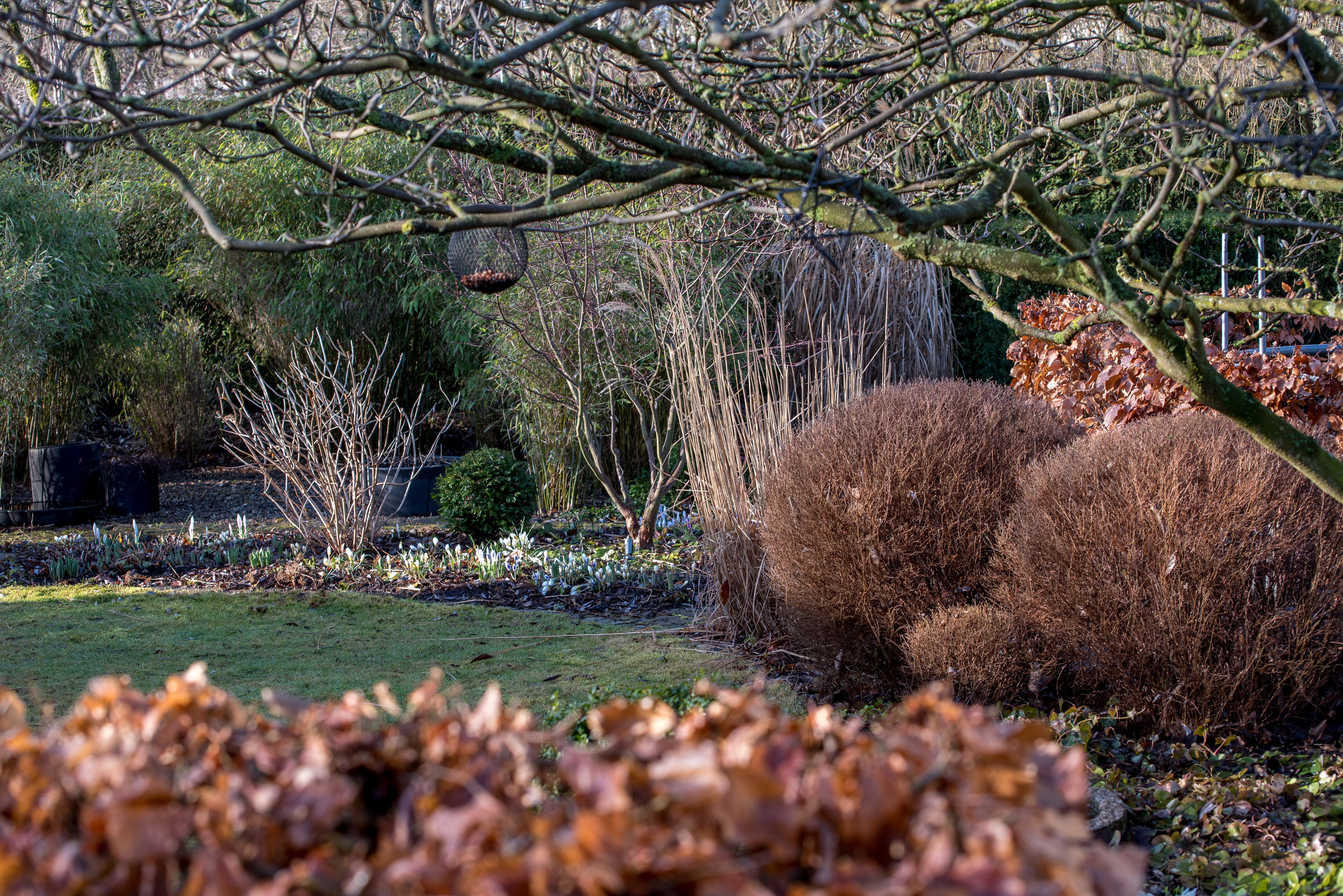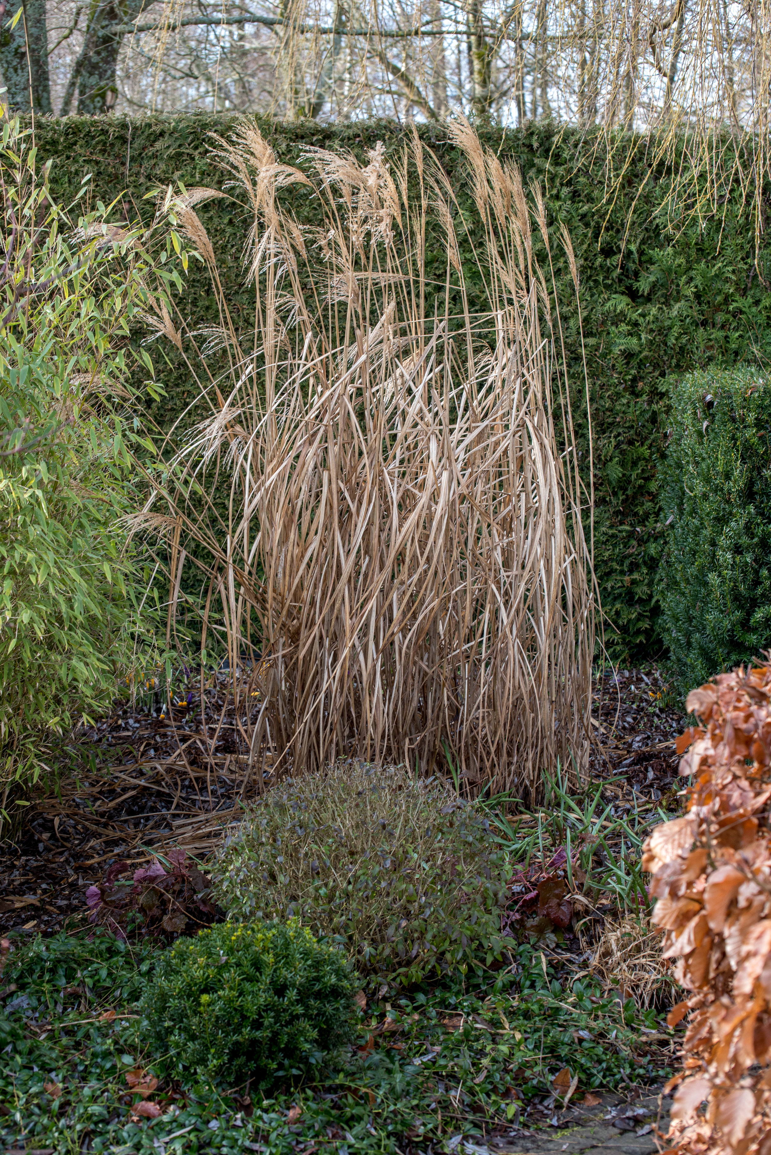 Nu är det dags att klippa ner de stora gräsen. Det kommer se lite tomt ut i början, men man vänjer sig snabbt. Det börjar faktiskt se lite risigt ut. Anledningen att man inte klipper ner dem på hösten är förutom skönhetsvärdet på vintern, att de riskerar att ruttna av fukten som då tränger ner i roten. Den faran är dock över nu, åtminstone i Skåne.