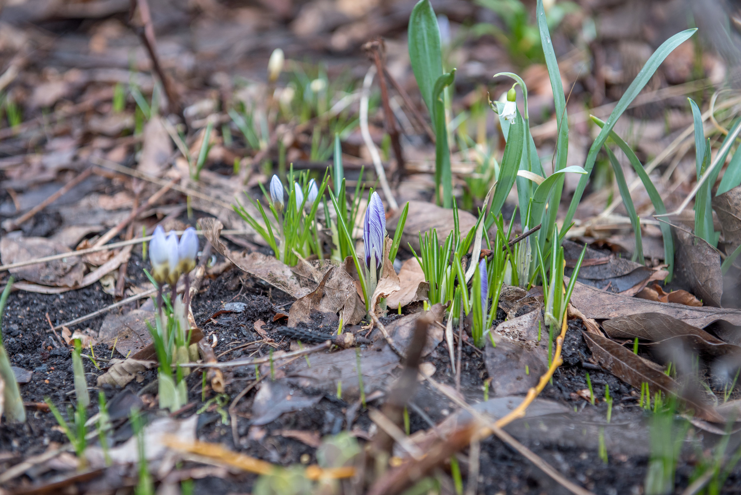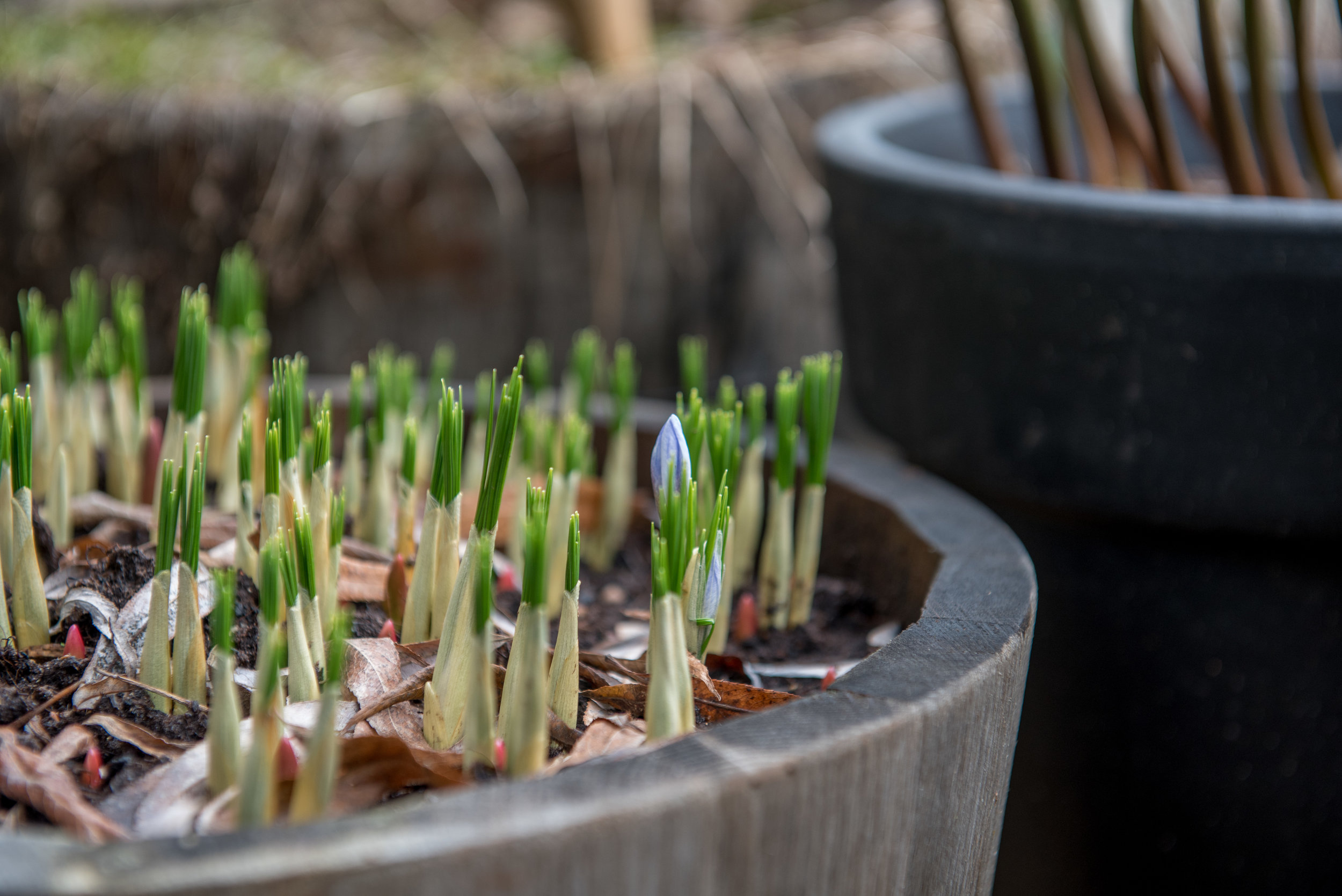 Jag hade glömt vilken färg på krokus jag planterat i trätunnan. Blev jätteglad att de var de små blå.