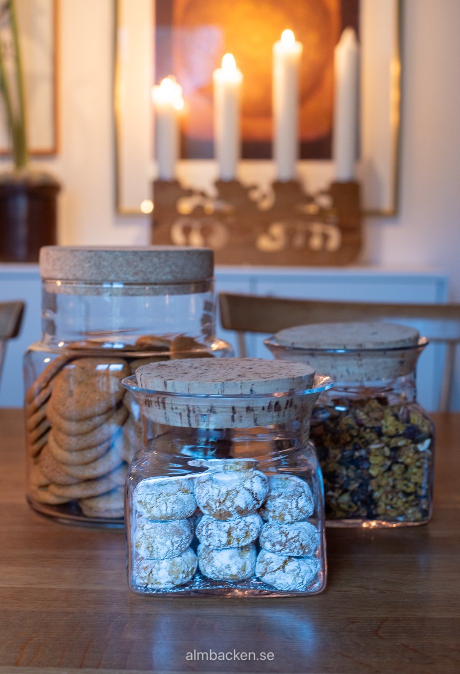 Mandelkakor med apelsin och saffran är ett måste hos oss varje jul. Liksom saffransgranola, lussekatter och mandelmusslor. Lussekatter och mandelmusslor har jag ännu inte bakat. Det får bli till helgen.