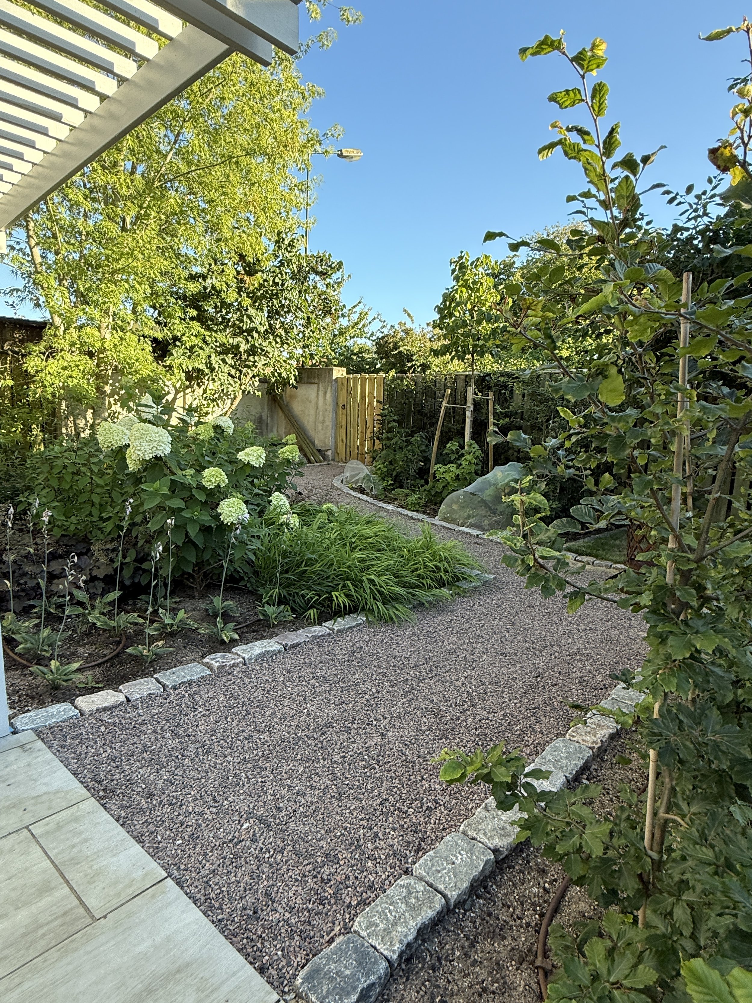 Nu har det snart gått tre månader sedan anläggningen av denna trädgård i Limhamn. Det är inte klokt vad bra jord, lite vatten och sol och värme gör för växtkraften.